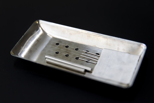 髪の毛ほどの細い鍼を「鍼管(しんかん)」という筒に入れ、トントンと叩くので、痛みはほとんど感じません。